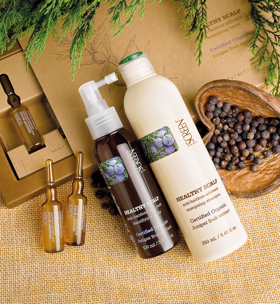 The Healthy Scalp product family, formulated with Certified Organic Juniper fruit extract, is designed to restore energy and vigor to your hair. Juniper, already known in ancient times for its purifying properties, was burnt for its disinfectant effect, while during the Middle Ages, its berries were considered miraculous. Today, its astringent, purifying, tonic, and stimulating properties for peripheral circulation make Juniper the perfect ingredient to restore the natural biological cycle of skin and hair.