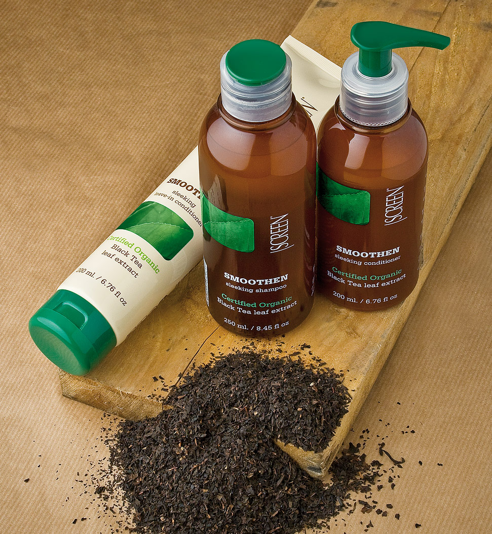 Conditioner μαλλιών για ίσιωμα χωρίς paraben, με πιστοποιημένο εκχύλισμα βιολογικού μαύρου τσαγιού. Πειθαρχεί και ενυδατώνει τα φριζαρισμένα μαλλιά, προσφέροντας απαλότητα και εύκολο βούρτσισμα χωρίς να προσθέτει επιπλέον βάρος.